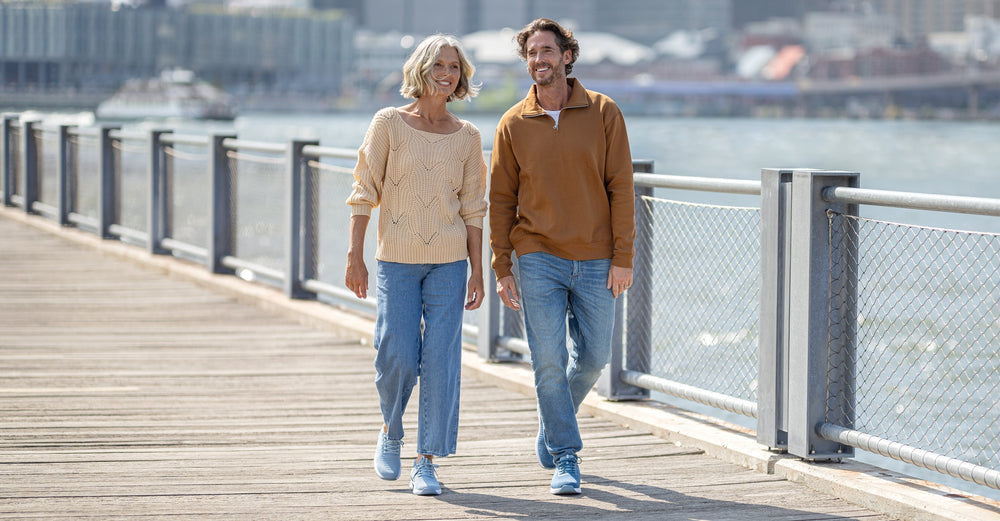 Walking can have both benefits and potential challenges for individuals with foot neuropathy. It's essential you wear appropriate footwear, such as wide toe box shoes, with cushioning, support and a proper fit. In addition, regularly inspecting your feet for any signs of injury or changes and promptly addressing any concerns with your healthcare professional is important for maintaining foot health. The benefits of walking are that it promotes blood flow to the feet, which can enhance circulation and potentially provide relief from symptoms associated with neuropathy. Walking also stimulates the nerves in the feet, which can help maintain their function and potentially improve sensation. Finally, walking is a low-impact aerobic exercise that can improve cardiovascular health, strengthen muscles and help manage weight. These benefits can have positive effects on overall well-being, including foot health.