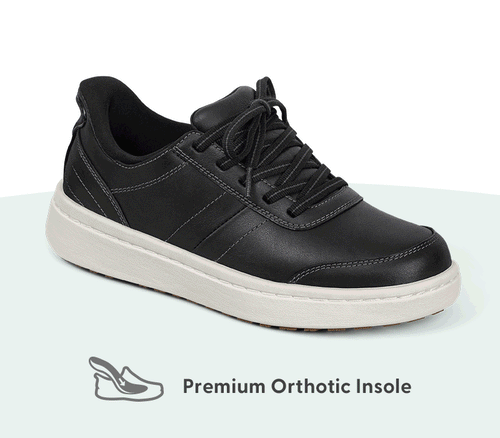 Within this "goes-with-everything" lightweight sneaker is engineering for life on-the-go. Skip the laces and step right in, with our revolutionary hands-free technology. Even sensitive feet stay pain and injury-free, thanks to a padded, roomy interior. With the impact-absorbing ergonomics and adjustable support of the Ortho-Cushion™ System, it's "game on" every day. Comes in both leather and breathable fabric versions to style your way.