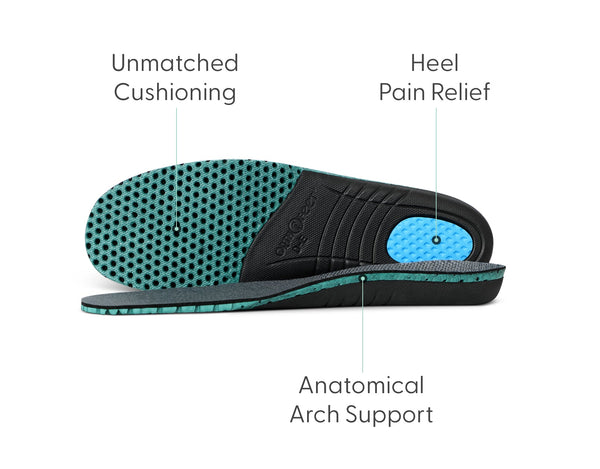 The closest thing to custom. Premium orthotic insole with anatomical arch and multi-layer density foams supports and aligns the body while providing heel to toe cushioning.