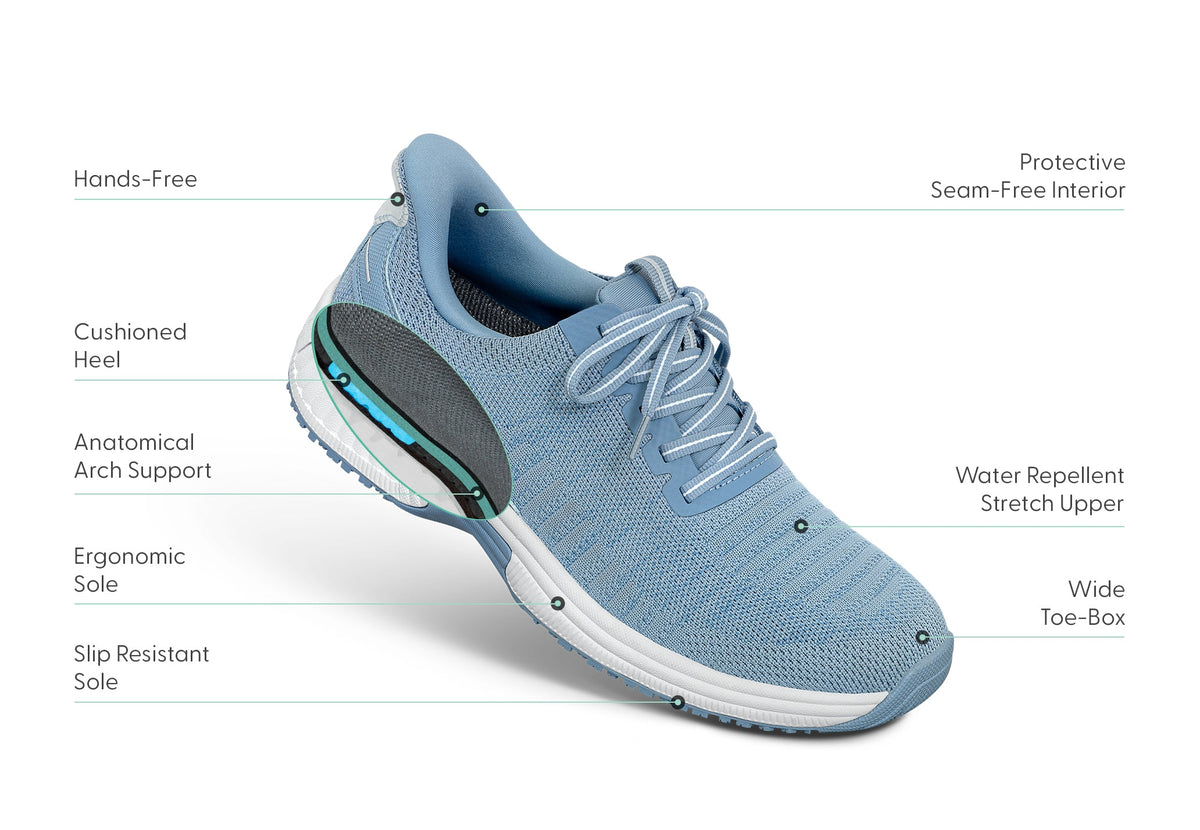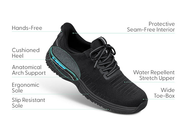 Sporty, hands-free design with slip-on ease and all-day comfort—no bending required.