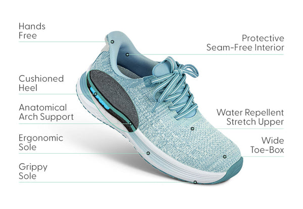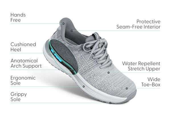 • Wide toebox - offers plenty of space for bunions, hammertoes, & swollen feet.